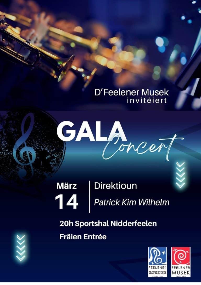 Eise Gala Concert 2023 steet virun der Dier, Samsdes, den 18. Mäerz zu Feelen an der Sportshal.